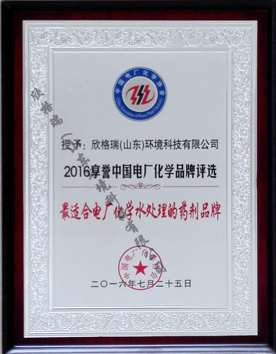 最適合電廠水處理應(yīng)用藥劑品牌獎(jiǎng)