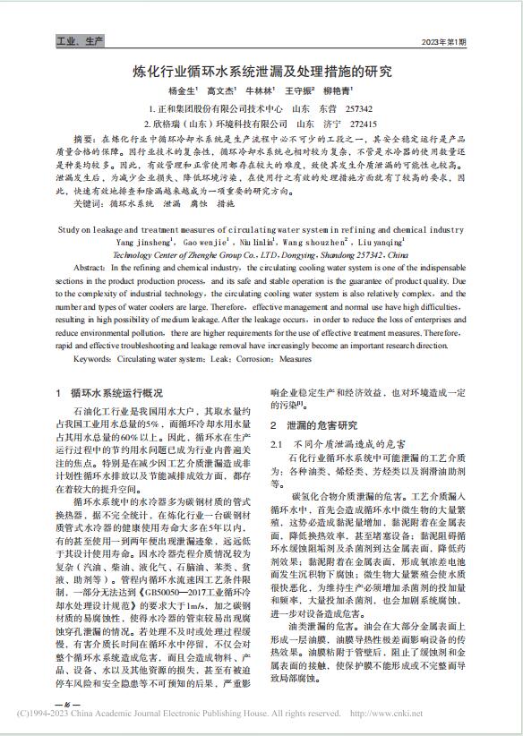 50、煉化行業(yè)循環(huán)水系統(tǒng)泄漏及處理措施的研究