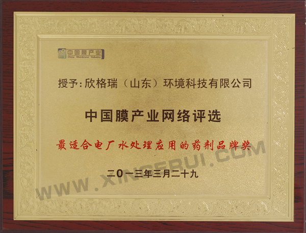最適合電廠水處理應(yīng)用藥劑品牌獎(jiǎng)