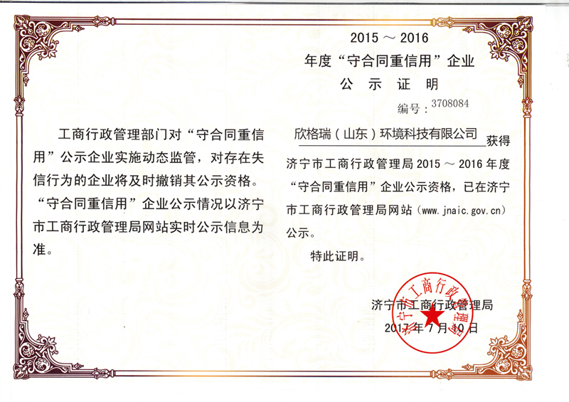 2015-2016年度守合同重信用企業(yè)